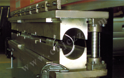 板料万能卷管模,专供折弯机使用,填补国内空白,本模具适合同规格工件批量生产,加工后的工件,高精一致,更换上下模头,即可完成不同直径的圆管压制,本模具自带定位机构,理论上制管直径大于等于板厚的8倍。本模具与折弯机上滑块对接安装时,可自由调整模具对中机构即可。